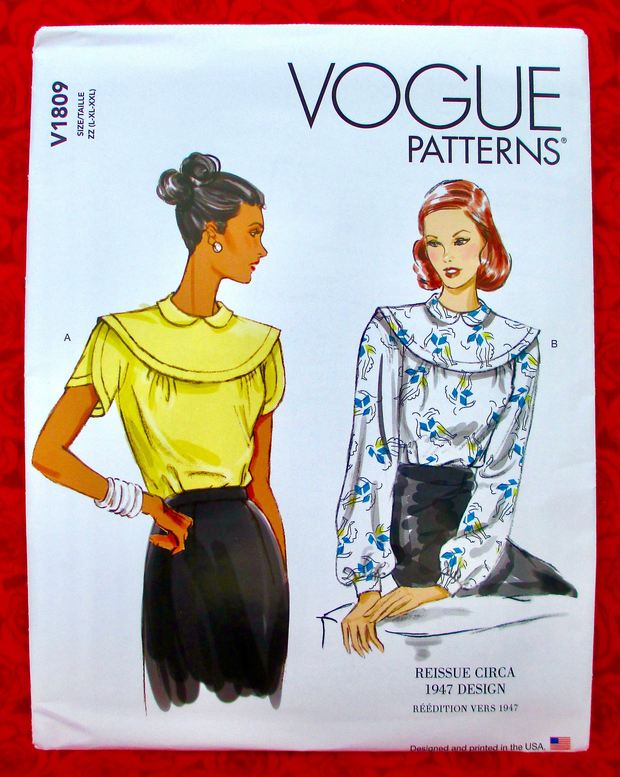 Vogue Sewing Pattern V1809 Retro 1940 S Blouse Short Etsy New Zealand